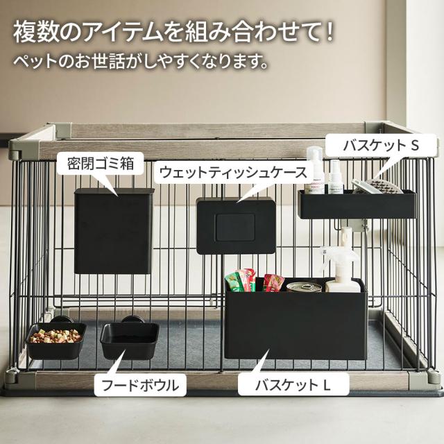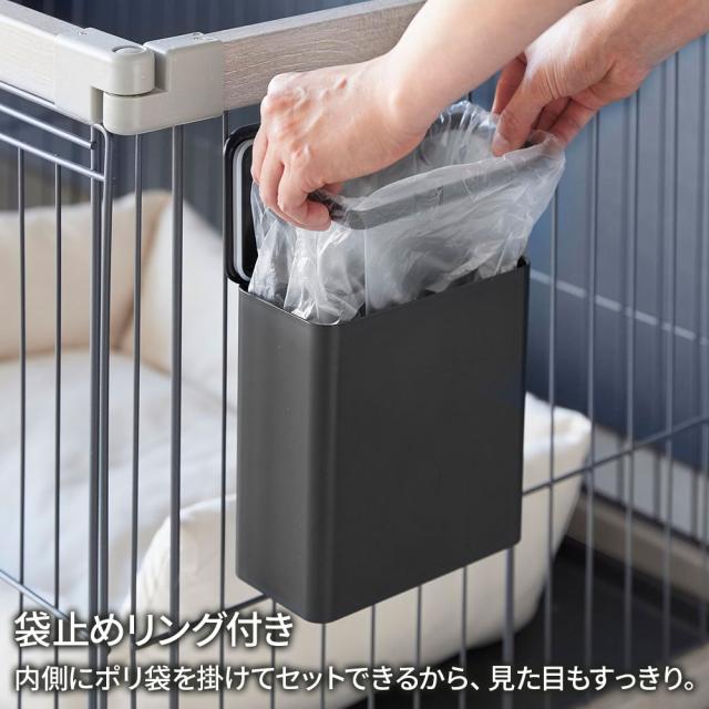 山崎実業 nooks ヌークス ペットケージに取り付ける 密閉ゴミ箱 ホワイト 10452 / ブラック 10453 | ペット ごみ箱 ダストボックス 簡易ゴミ箱 ゴミ捨て におわない フタ付き パッキン付き ペットケージ 浮かせる シンプル おしゃれ