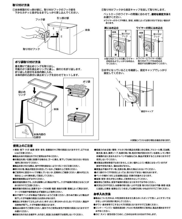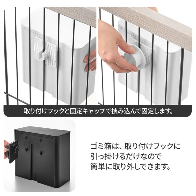 普段お使いのケージやサークルに取り付けできる密閉ゴミ箱。