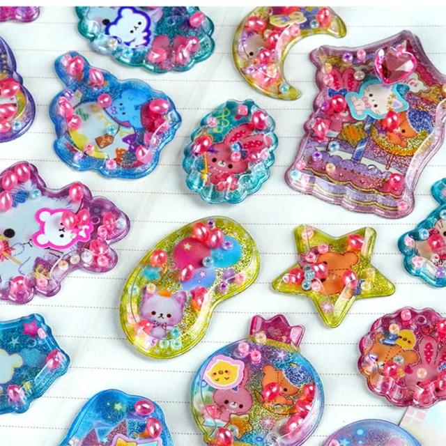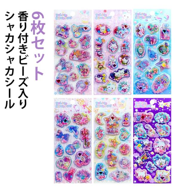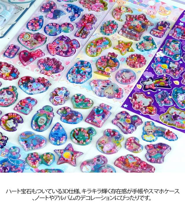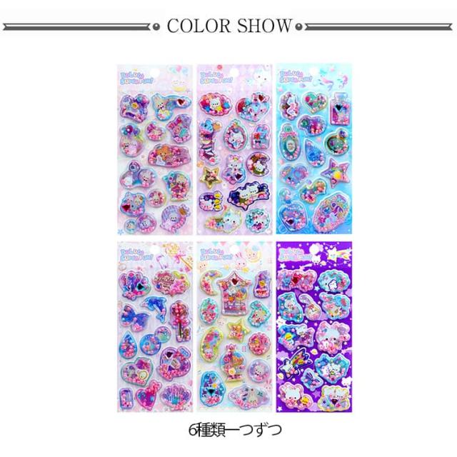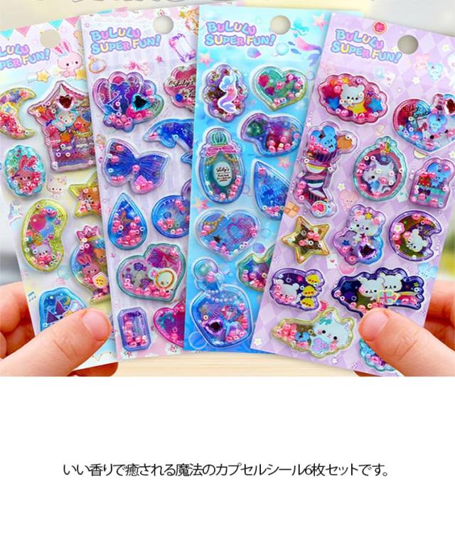宝石シール ステッカー 香り付き カプセル カプセルシール シャカシャカシール 立体シール 6枚セット 香りビーズ入り シール 立体 シール くま キラキラ うさぎ 6枚セット 海洋生物 可愛い 女の子 マシュマロシール ぷくぷくシール