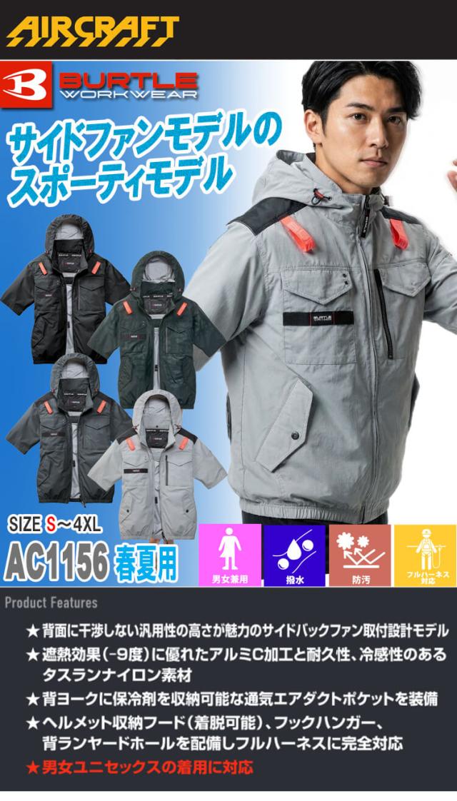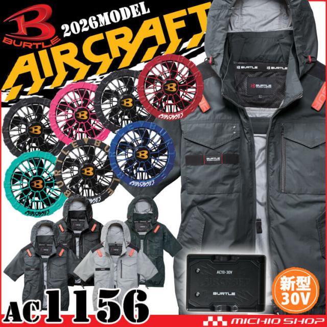 [予約]エアークラフト 半袖ブルゾン+ファン+新型30V黒バッテリーセット AC1156 AC10シリーズ バートル BURTLE AIRCRAFT 2026年モデル