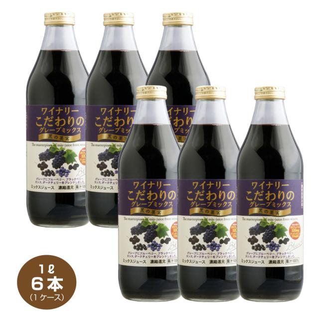 送料無料 ワイナリーこだわりのグレープミックス 黒の果実 1L×6本 瓶 1000mlビン アルプス 果汁100% グレープジュース ぶどうジュース