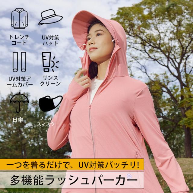 関連キーワード:ラッシュガード 接触冷感 UVパーカー ラッシュパーカー UVカット レディース 吸汗速乾 UPF50+ 指穴 つば 長袖 夏 薄手 フード付き 日焼け防止 光老化 紫外線対策