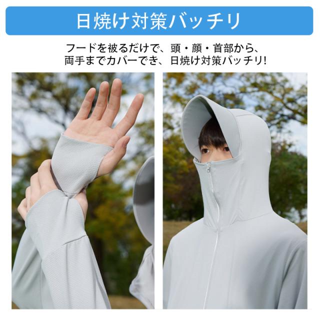 ラッシュガード メンズ 長袖 UVカット パーカー 接触冷感 レディース 大きいサイズ 指穴 つば取り外し あご紐 吸水速乾 日焼け防止 反射材