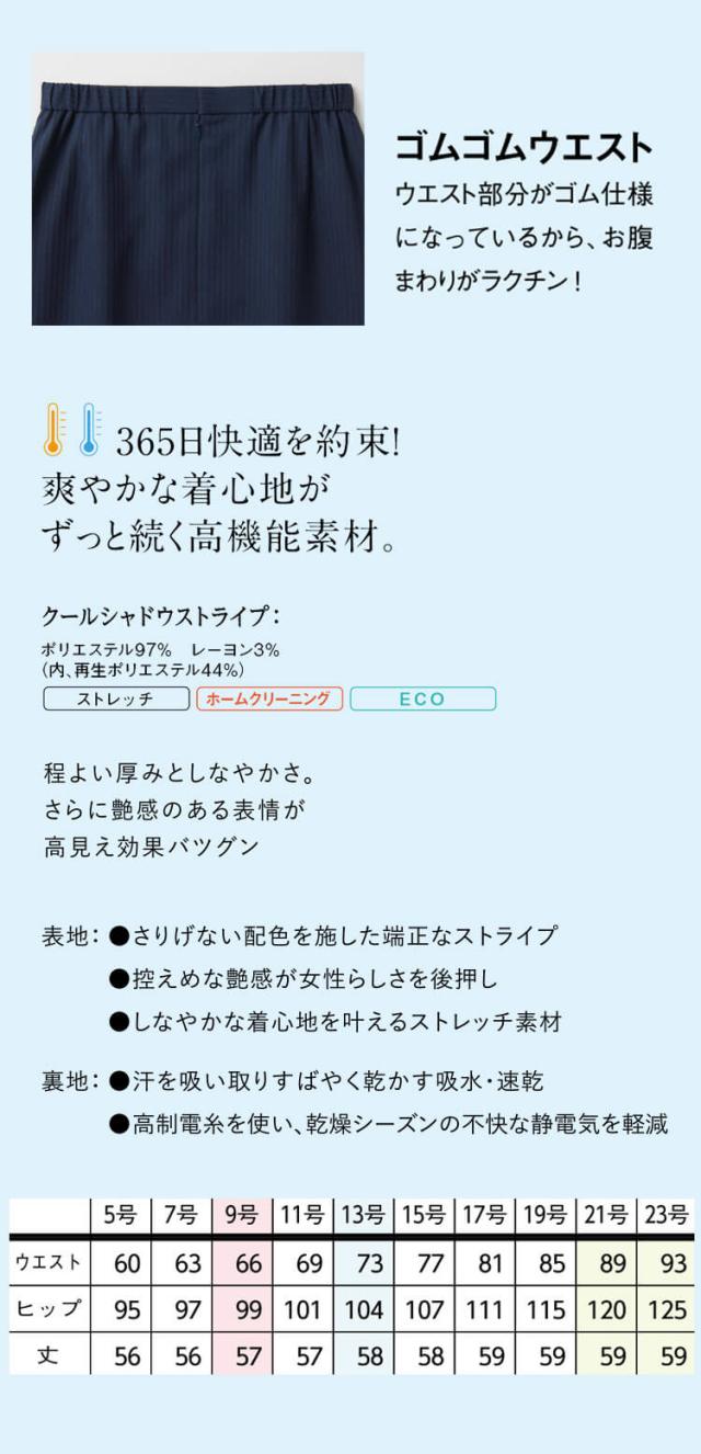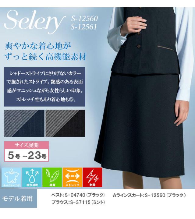 事務服 制服 オフィス セロリー selery Aラインスカート S-12560 S-12561 サイズ21号・23号 2026年春夏新作 クールシャドウストライプ