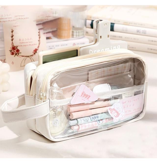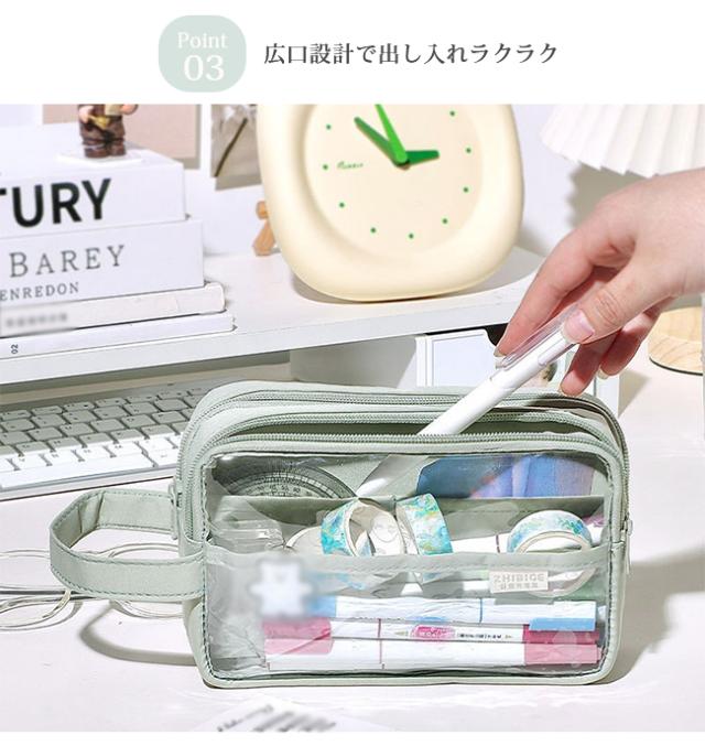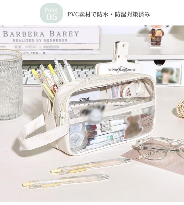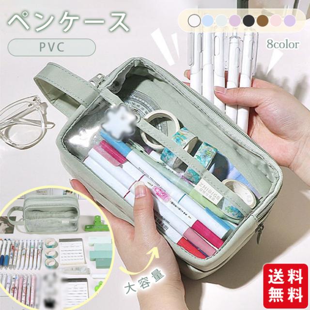 筆箱 ペンケース PVC 透明 INS風 収納 ポーチ おしゃれ シンプル 筆入れ レディース メンズ 大容量 小学校 女子 男子 中学生 高校生 大学生 かわいい ギフト プレゼント