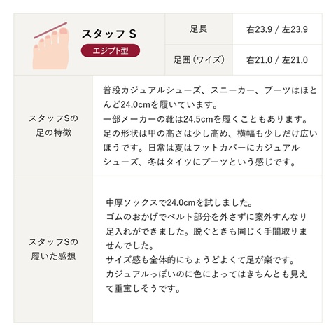 つま先のカーブに沿ったオブリークトゥがエジプト型の足にフィットし、