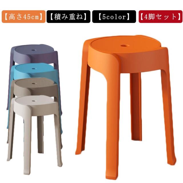 【4脚セット】スタッキング スツール 高さ45cm 円形 ニュアンスカラー チェア ダイニングチェア 丸いす 丸 椅子 積み重ね コンパクト 軽量 PP素材 おしゃれ シンプル モダン 北欧 スタッキングスツール ダイニング 玄関 イス チェアー 簡易 収納 カラフル スタッキングチェア