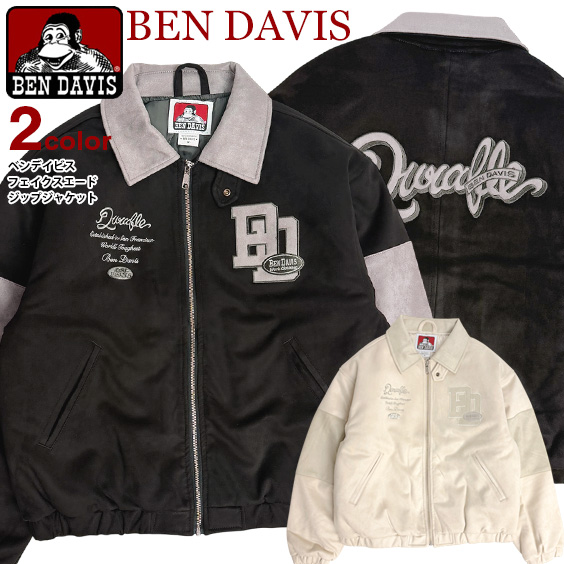 BEN DAVIS ジャケット ベンデイビス ワッペン刺繍 フェイクスエード ジップジャケット メンズ ブルゾン 中綿 アウター BEN-2256
