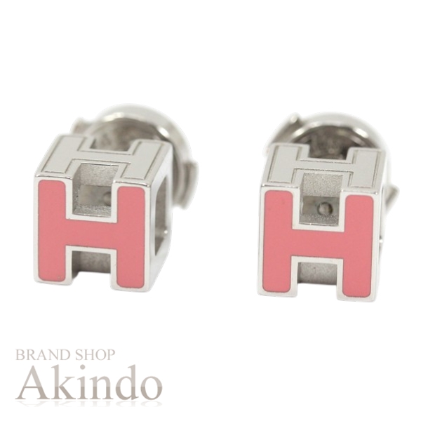 エルメス ピアス Hキューブ ミニ Hロゴ ピンク シルバー ラッカー HERMES レディース 女性 アクセサリー ジュエリー ブランド 定番 人気