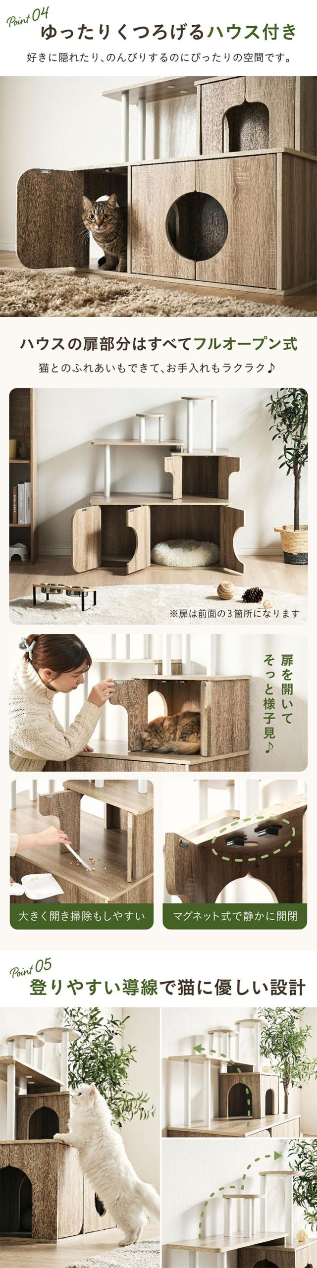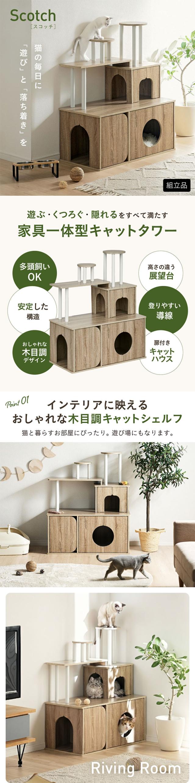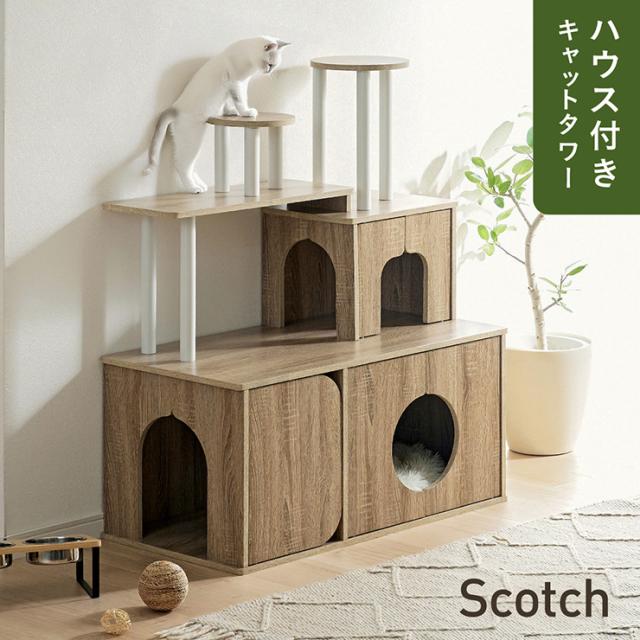 キャットタワー おしゃれ 据え置き 猫タワー 木製風 キャットシェルフ 多頭飼い キャットハウス 扉付き 展望台 大型猫 安定設計 猫家具 木目調 インテリア キャットラック 猫用家具 Scotch スコッチ