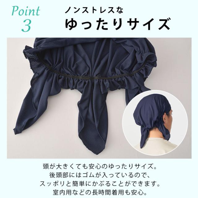 後頭部にはゴムが入っているので、スッポリと簡単にかぶることができます。