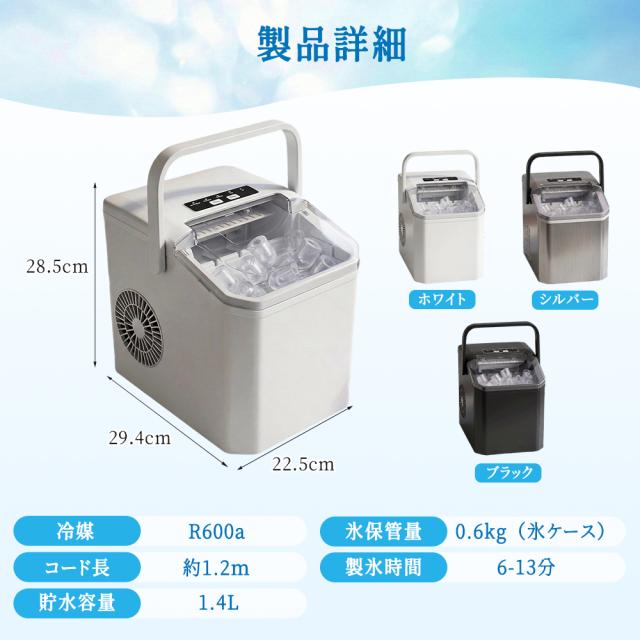 卓上製氷機 家庭用 小型 電気 製氷機 自動洗浄機能付き 6-13分高速製氷 2種類の氷サイズ選べる 漏水自動停止 欠水自動停止 1.4L大容量タンク 約0.6kg氷保管 省スペース コンパクト キッチン バー キャンプ アウトドア パーティー 来客用 氷不足解消