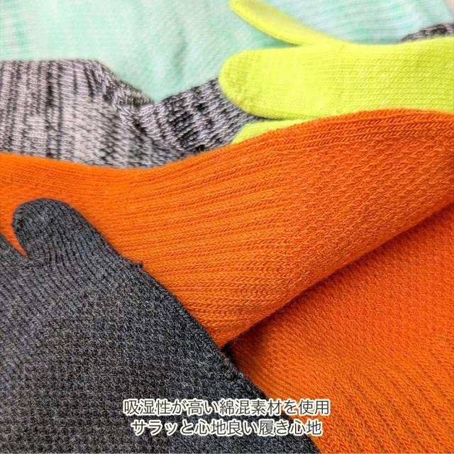 ・足指が自由に動かせるため、足の汗をしっかり吸収し、蒸れやニオイを軽減します。指先が自由に動くことで血行促進にも役立ち、長時間の着用でも快適です。