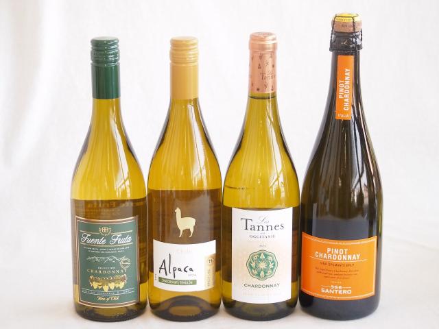 余韻に酔いしれるシャルドネ白ワイン4本セット(アルパカ ネセミヨン辛口Alc.12.5%(チリ) オクシタンやや辛口Alc.13.5%(フランス) サンテロ ピノ スプマンテ 辛口Alc.11.5%(イタリア) フエンテフルータ白辛口Alc.13%(チリ