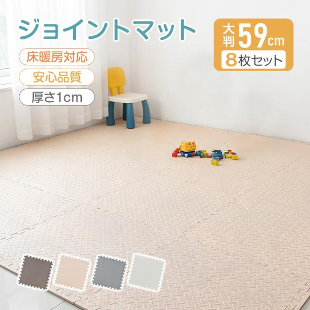 フロアマット ジョイントマット PEマット 大判 59cm クッションマット 防音マット 防音対策 床暖房対応 防水 水拭きOK サイドパーツ付き カット可能 子供部屋 プレイマット 8枚セット in084