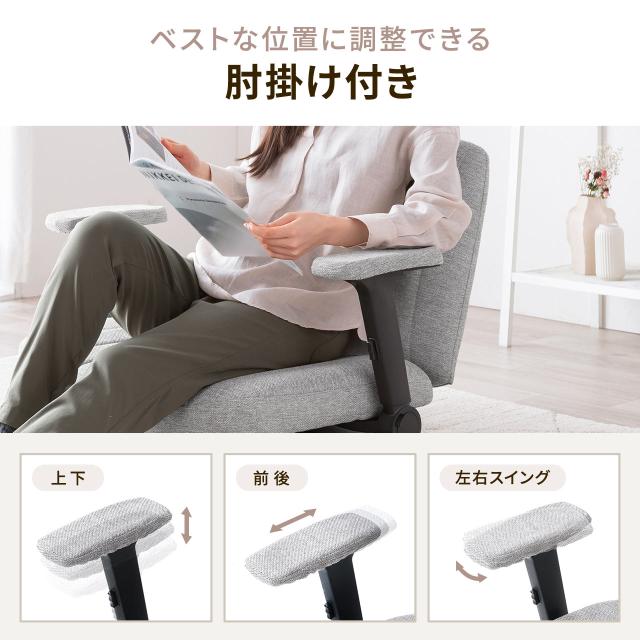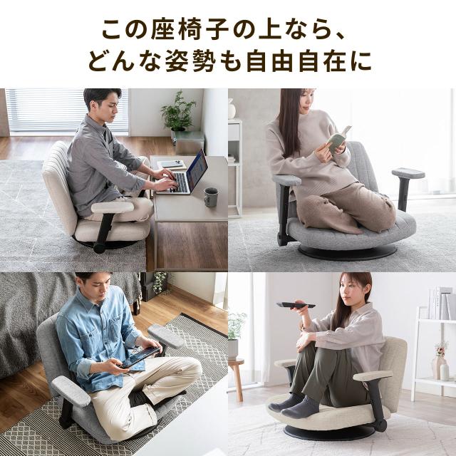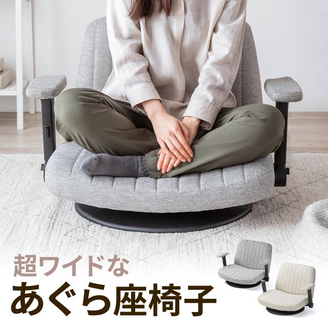 あぐら座椅子 幅広座椅子 3Dアームレスト 肘跳ね上げ 360°回転 ベージュ グレー[150-SNCH71]