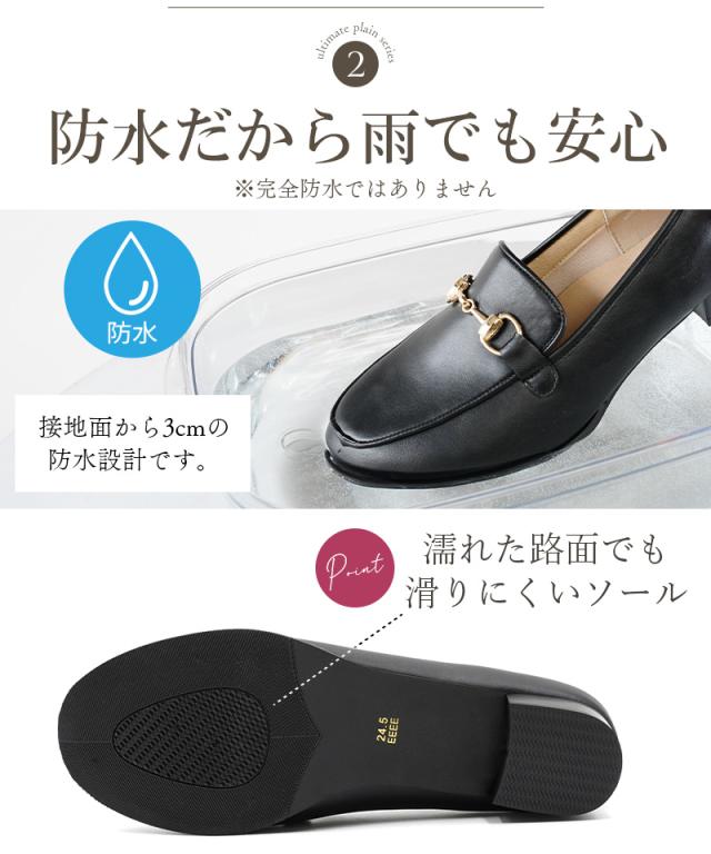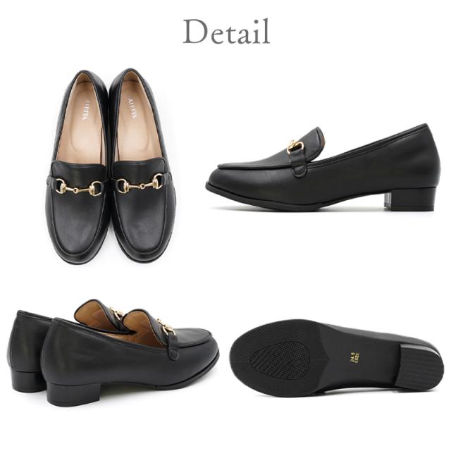 ローファー レディース ALETTA 防水 ラウンドトゥ 2.5cmヒール パンプス 歩きやすい 疲れない 痛くない 走れる 金具 レイン ビットローファー 外反母趾気味 甲高 幅広 太ヒール 卒業式 入学式 卒園式 入園式 結婚式 通勤 黒 アレッタ 送料無料