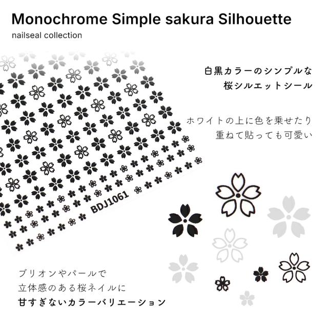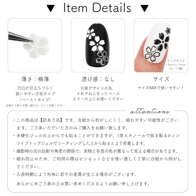 【訳あり品】ネイルシール モノクロシンプル桜シルエットシール [ブラック 黒/ホワイト 白] 全2色