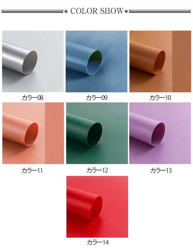 | PVC素材でホコリ、水分、汚れ、皺 に強い撮影用の背景スクリーンです。 折り目やシワが付き難く、水、汚れが拭き取れます。保管のために丸めても、少々のまるめ皺は時間とともに復元します。 紙や布に比べ使い勝手に優れ、耐久性も高く、繰り返しご使用できます。コスパで経済的です。 背景紙一枚だけで光沢効果とつや消し効果を便利に手に入れます。 取り扱いが容易で初心者にはぴったりです。 シーンに合わせて様々な20カラーをご用意しました!ミニュチュアの撮影などには最適です。 | |