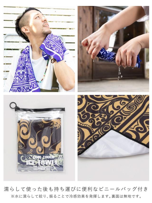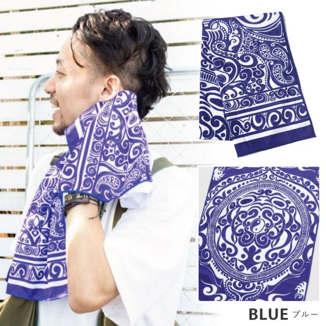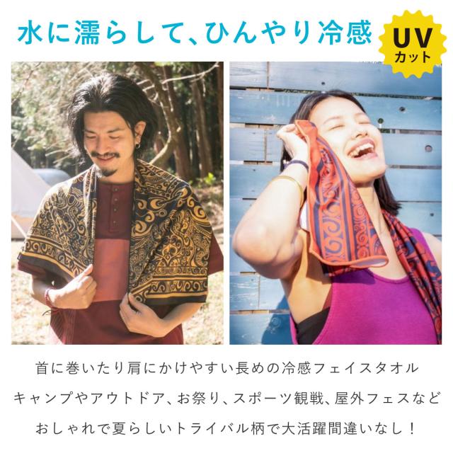 超冷感 ひんやり クールタオル 長方形で使いやすい 暑さ対策 濡らして接触冷感 34cm×110cm UV CUT トライバル柄 ha-529 お洒落 首 ターバン 熱中症予防