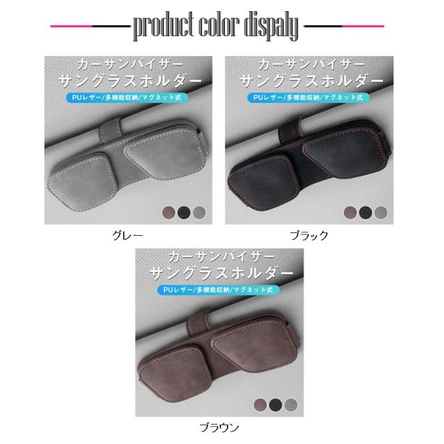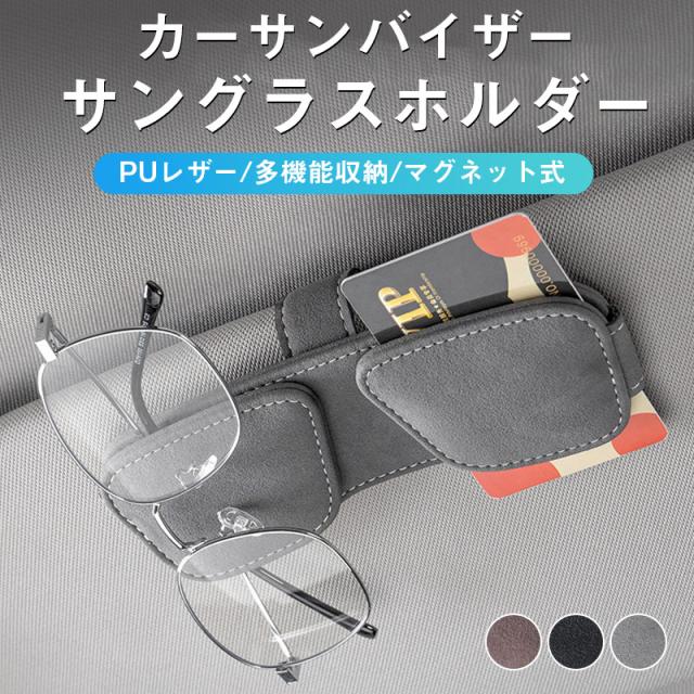 サングラスホルダー 車用 カードホルダー 車載 マグネット レザー カー用品 メガネホルダー 収納 車内 サンバイザー クリップ キャップ 眼鏡
