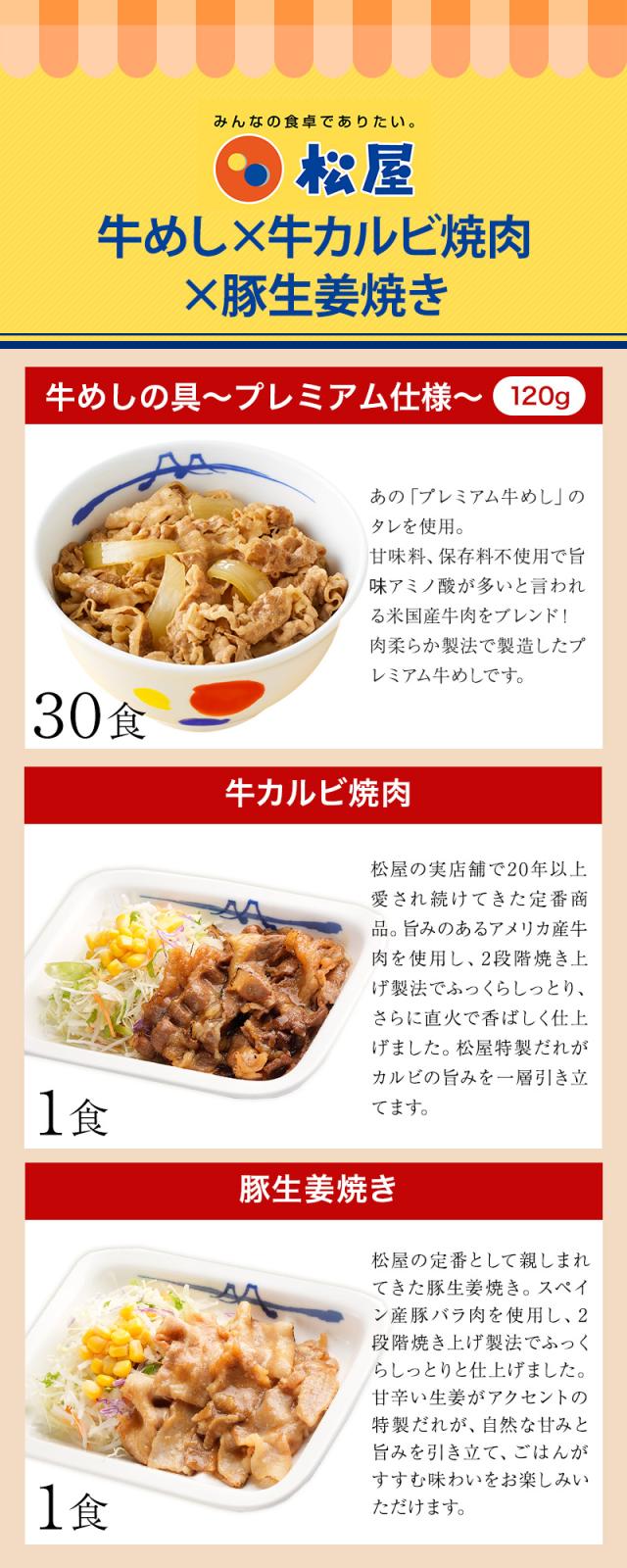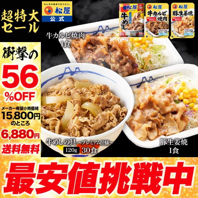 【衝撃の56%OFF!】 松屋 公式 牛めしの具 120g 30食 & カルビ焼肉 1食 & 豚生姜焼き 1食 おまけ付 まつや 牛丼 食品 グルメ 冷凍 冷凍食品 送料無料 おかず 惣菜 業務用 お弁当 レンチン お試し 食事 おつまみ 非常食