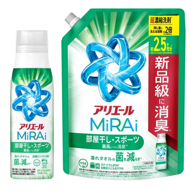 P&G アリエール ミライ 超濃縮 部屋干し・スポーツ 本体330g + つめかえ800g セット
