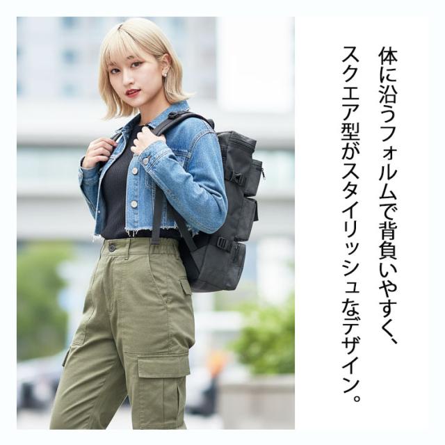 ・インパクトのあるスクエアフォルムのリュック