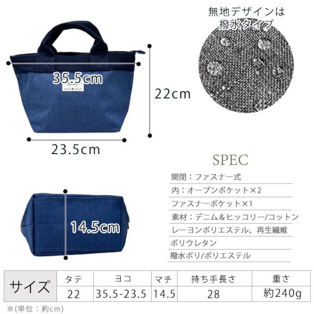 ・無地デザインは撥水だから雨の日でも気兼ねなく持てます