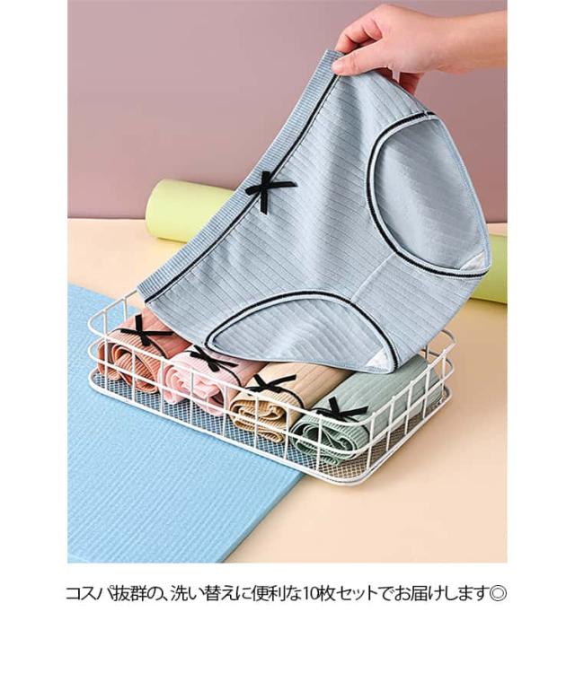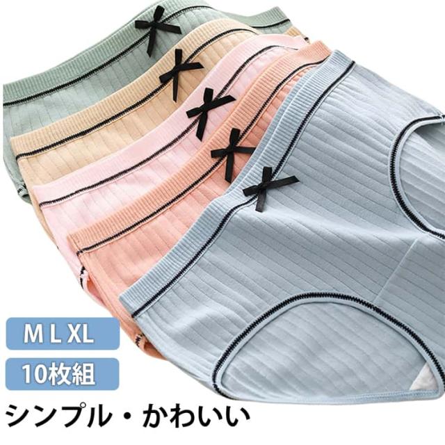 ショーツ 10枚セット 下着 レディース スタンダード M L XL インナー 送料無料 リボン パンツ パンティー パンティ 可愛い 女性 かわいい 美尻 すっぽり 肌に優しい 通気性 リブ ジュニア 女子 くすみカラー シンプル 女の子