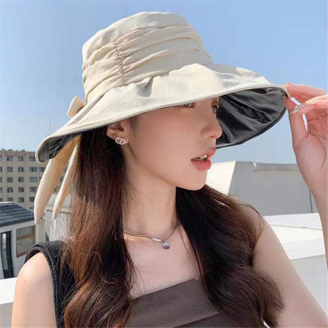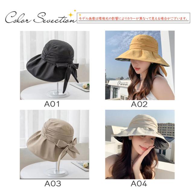 帽子 サンバイザー 日除け帽子 レディース つば広帽子 リボン uvカット 日焼け防止 紫外線対策 あご紐付き 涼しい 折り畳み