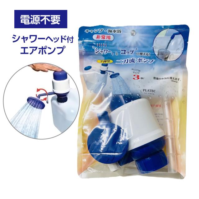 水缶用ポンプ 新二刀流 ポリ缶ポンプ(50mm口径用) PS-5 | エアポンプ 水缶用 ポリタンク用 手押し型 電源不要 シャワーポンプ