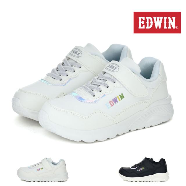 エドウィン EDWIN ジュニア キッズ スニーカー EDW-3677 女の子 子供靴 防水スニーカー 雨靴 レインスニーカー レインシューズ マジックテープ ホワイトスニーカー 通学 軽量 軽い 運動靴 4cm×4時間防水