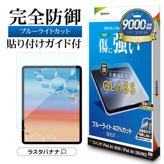 iPad Air (M4) (M3) (M2) 13インチ ガラスフィルム 全面保護 ブルーライトカット 高光沢 傷に強い ホコリ防止 硬度10H 簡単貼り付け GST5319IPA13M4 ラスタバナナ