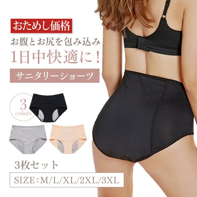 サニタリーショーツ 生理用 3枚セット 防水布 綿素材 ハイウエスト パンティ 生理用ショーツ 生理用パンツ 快適 漏れ モレ 下着 パンツ パンティ 10代 20代 30代 40代 50代 60代 女性用 下着