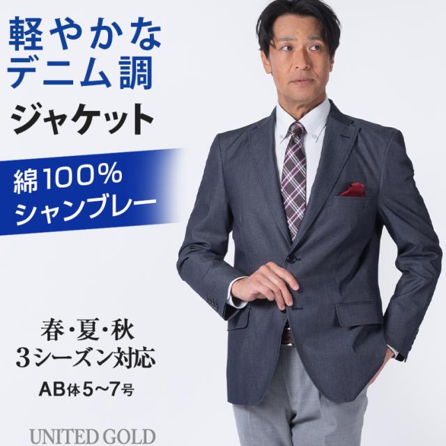 ジャケット メンズ テーラードジャケット デニム調 綿100% シャンブレー 軽量 清涼裏地 春 夏 秋 サマージャケット ビジカジ カジュアル 紳士服 226204 jk321 送料無料 ※お使いのパソコンモニタやスマートフォンの機種、ブラウザによって実際の商品の色とは異なって見える場合がございます。ご了承ください。UNITED GOLD ユナイテッドゴールド UNITEDGOLD
