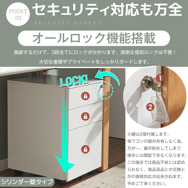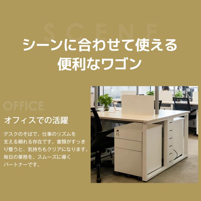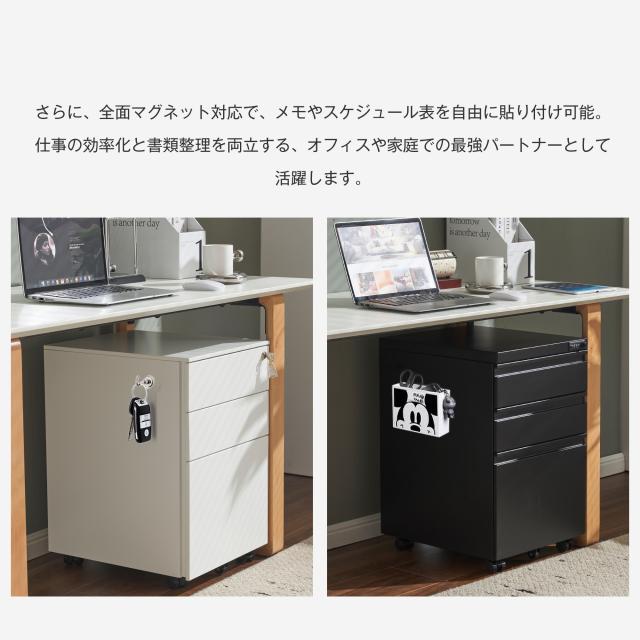 OSJ デスクワゴン スリム 3段 スチール製 完成品 キャスター付き 鍵付き A4対応 大容量 全面マグネット対応 サイドワゴン オフィスワゴン 耐荷重25kg (ホワイト/ブラック)