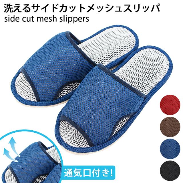 通気穴つき 洗える サイドカット メッシュ スリッパ 軽い クッション性抜群 さらさら 夏用 春夏 オールシーズン 立体構造 通気性 メッシュ生地 メンズ レディース 来客用 ルームスリッパ 部屋履き 在宅勤務 洗濯機で洗えます