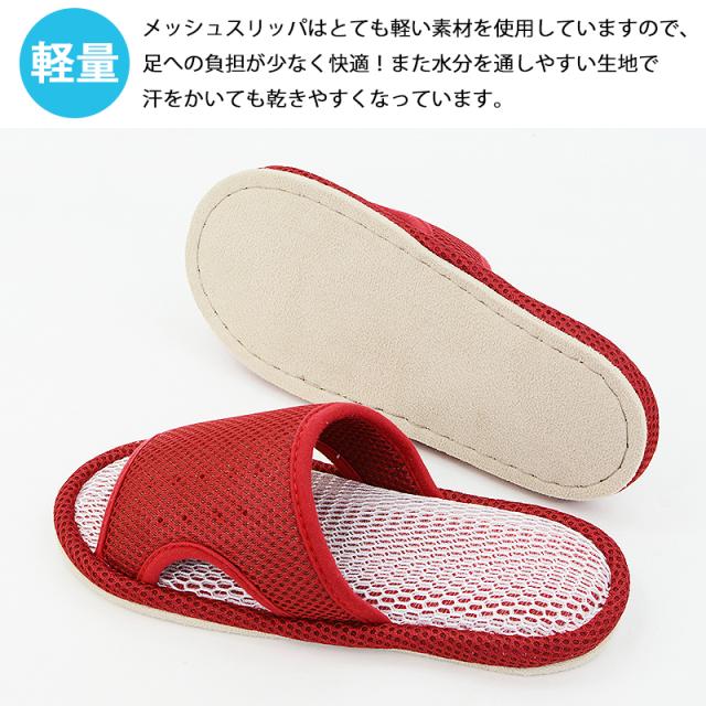 メッシュスリッパはとても軽い素材を使用していますので、足への負担が少なく歩きやすさと履きやすさの良さが特徴!