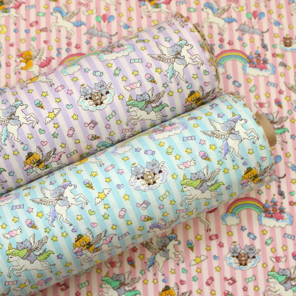 【10cm単位価格】 ゆめかわ猫 にゃんこ ねこ ユニコーン ストライプ キャンバス 綿100% 生地 布 約110cm幅 コットンこばやし KTS7166 ゆうパケット2m対応 ( ハンドメイド 手作り 日本製 手芸 裁縫 巾着 雑貨小物 入園入学 )