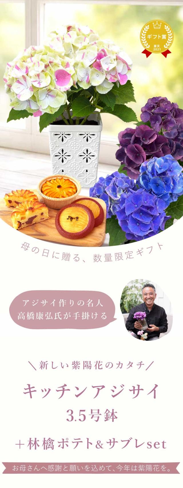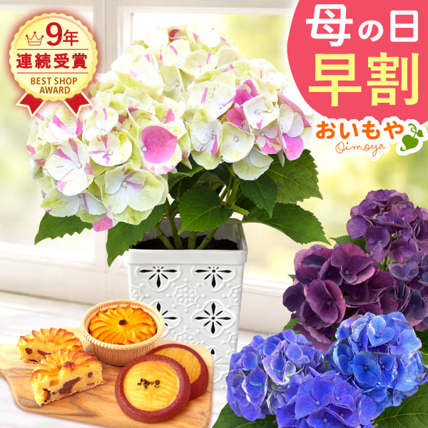 母の日 早割 花とセット 花 プレゼント 花とセット 生花 鉢植え 送料無料 選べる アジサイ 紫陽花 あじさい 3.5号 どら焼き スイートポテト サブレ おいもや 母の日 花とセット 母の日 ギフト 母の日 花ギフト 鉢花 母の日の花