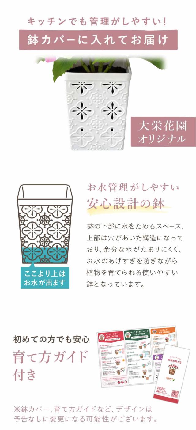 【生花の鉢植え(3.5号鉢) 1個】 【林檎スイートポテトとお芋サブレ 各2個】 賞味期限:2026年5月22日 ・林檎スイートポテト 薩摩芋ペースト(薩摩芋、砂糖)(国内製造)、林檎加工品(林檎、砂糖)、バター、加糖卵黄(卵黄、砂糖)、小麦粉、準チョコレート、砂糖、ファットスプレッド/グリシン、乳化剤、酸味料、香料、(一部に小麦・卵・乳成分・大豆・りんごを含む) ・お芋サブレ 小麦粉(国内製造)、バター、粉糖、コーンスターチ、卵黄(卵を含む)、紅芋パウダー、さつまいもパウダー加工品、砂糖、食塩、ごま、水あめ、寒天、粉あめ/香料、クチナシ色素 【発送の温度帯】 常温便にてお届け |