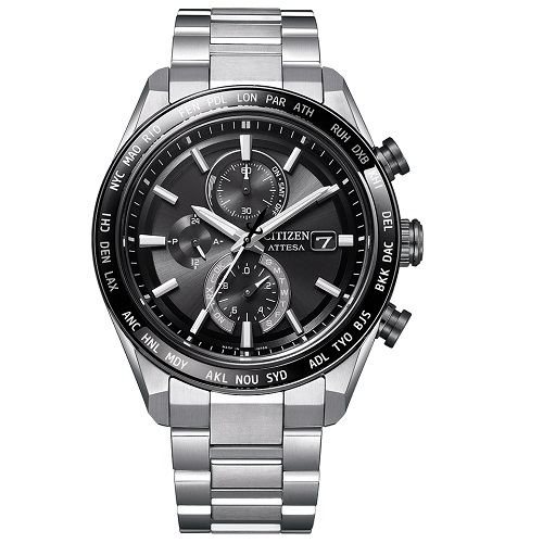 ●チタニウムで次世代を進み続ける、シチズン ATTESA(アテッサ)。人気の「ACT Line」AT818シリーズをベースにアップグレード。ベゼルにリング状のサファイアを埋め込み、美しい艶と輝きを宿したワンランク上の1本です。