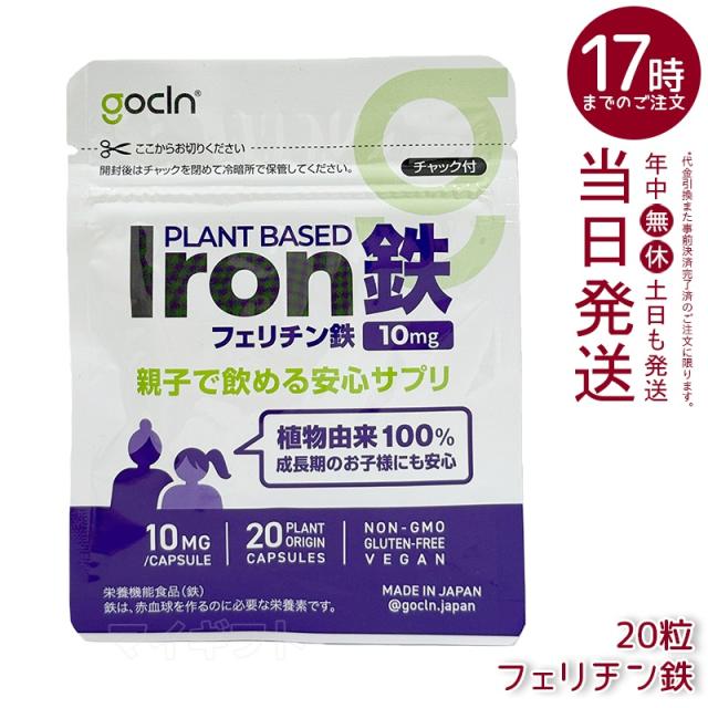 GoCLN ゴークリーン 親子で飲める 鉄 10mg 20粒 20カプセル フェリチン鉄 豆鉄 100% 鉄分サプリ 睡眠 ヘルスケア コラーゲン ミネラル 高濃度 高純度 無添加 サプリメント 健康食品 健康管理 機能性表示食品 送料無料