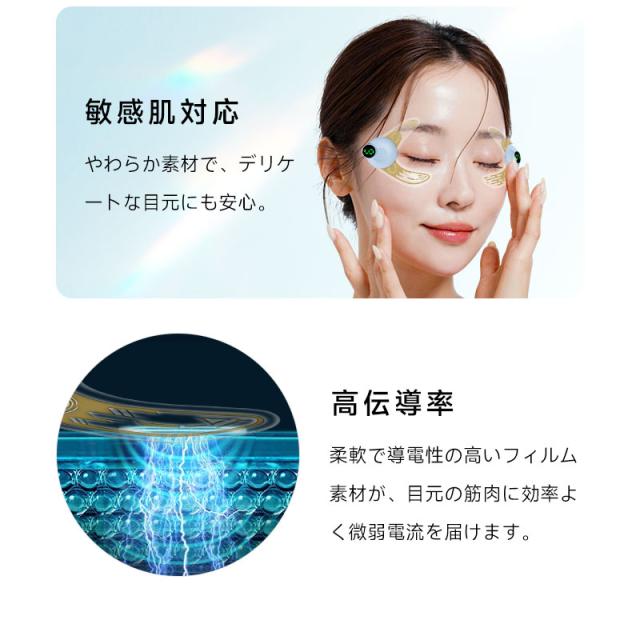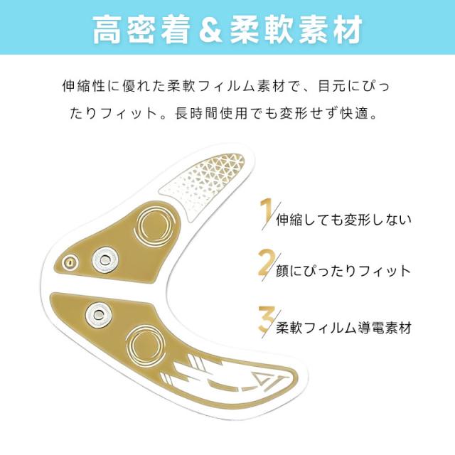 パッドの重要な役割は、本体が発生させたEMSパルスを、肌の奥(筋肉層)までロスなく伝えること。本製品は導電性に優れた特殊フィルム構造を採用し、微弱電流を均一に拡散。ピリピリとしたムラやチクチク感を抑え、快適な刺激でしっかりと眼輪筋にアプローチします。