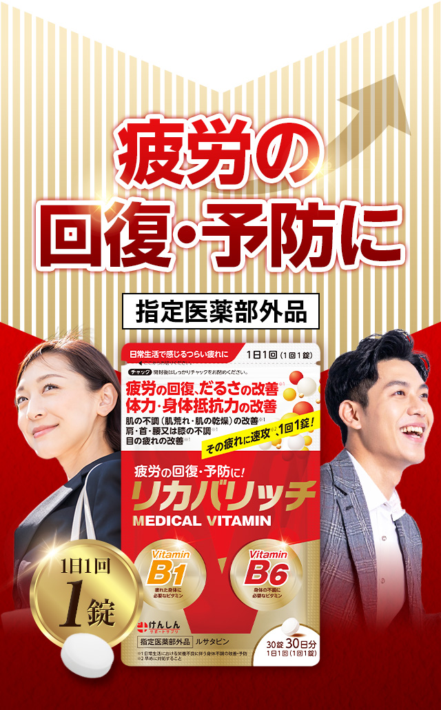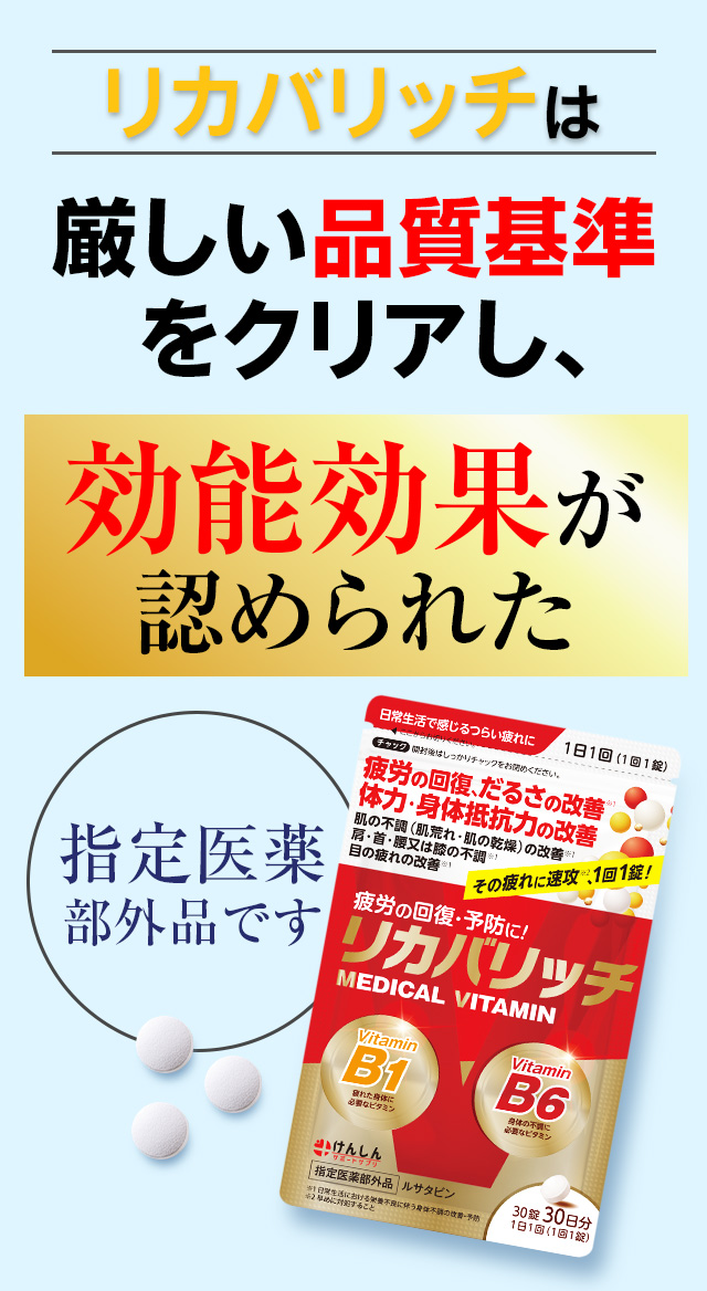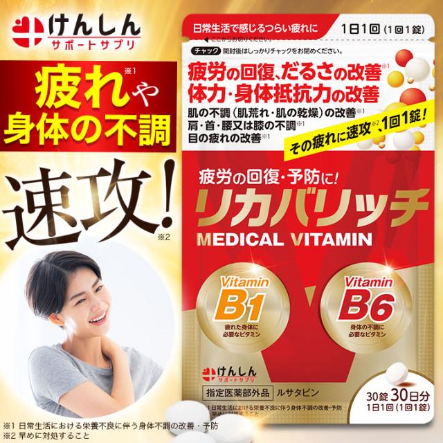 【指定医薬部外品】リカバリッチ 30粒(約30日分) 1袋 ビタミン ビタミンB1 ビタミンB6 サプリ サプリメント けんしん サポートサプリ ルサタビン 疲労回復 だるさ 肩 首 腰 ひざ 目の疲れ 改善