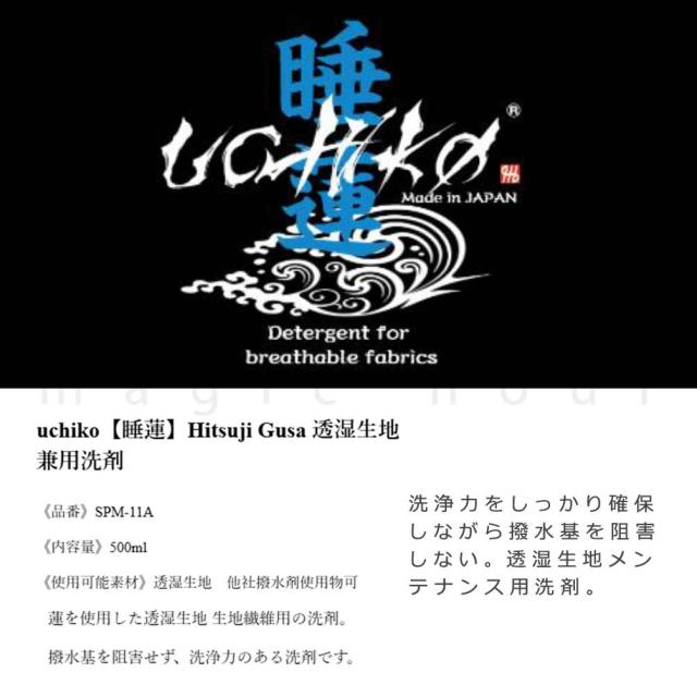 ◆ 透湿 防水生地用 ゴアテックス対応 洗浄 洗剤 UCHIKO ウチコ 睡蓮 hitsuji gusa ひつじぐさ 500ml レインウェア スキー スノボ 登山 ウエア はっ水 メンテナンス ◆