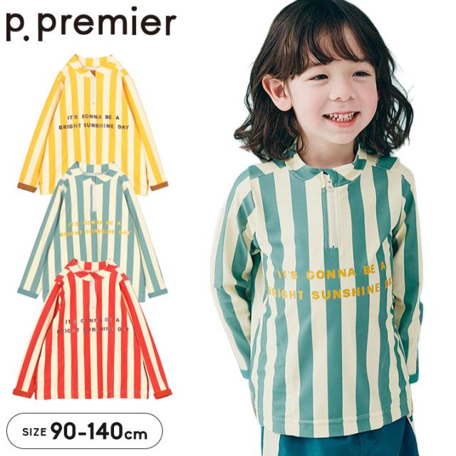 p.premier ラッシュガード キッズ 男の子 女の子 長袖 ハーフジップ ストライプ 子供 スタンドカラー 90cm 100cm 110cm 120cm 130cm 140cm UVカット 紫外線対策 プール 海 水遊び 小学生 幼稚園 送料無料