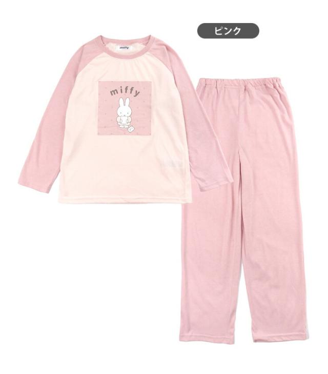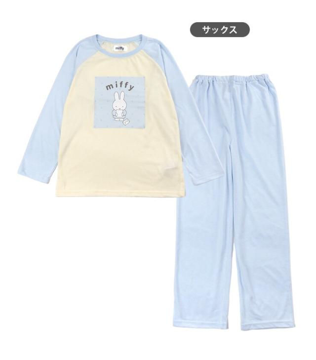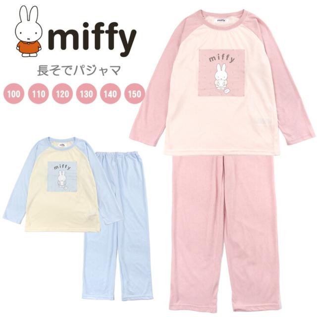 ミッフィー 長袖 パジャマ 上下セット キッズ トドラー ジュニア 女の子 春秋 100 110 120 130 140 150 サックス ピンク 76452WH miffy 2点セット ロンT 長ズボン キャラクター 綿混 丸首 子ども ラグラン イエロー 黄色 水色 メール便送料無料 kj0139