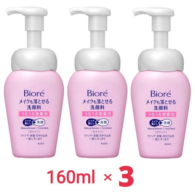 Biore ビオレ メイクも落とせる洗顔料 うるうる密着泡 160ml x3個